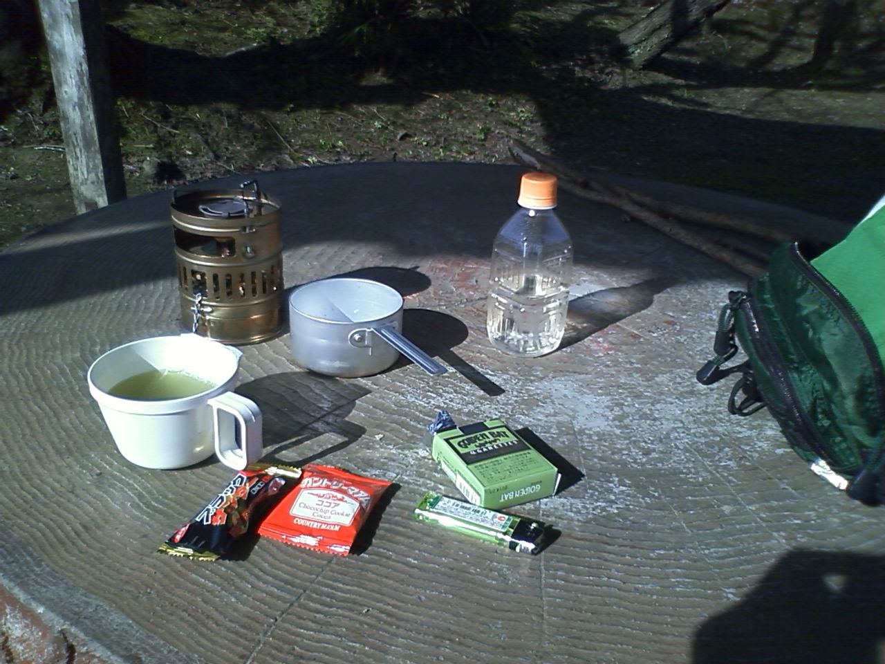 いつものガソリンコンロ Svea 123R に火を着けて、タバコを一本吸っているうちにお湯が沸いた。