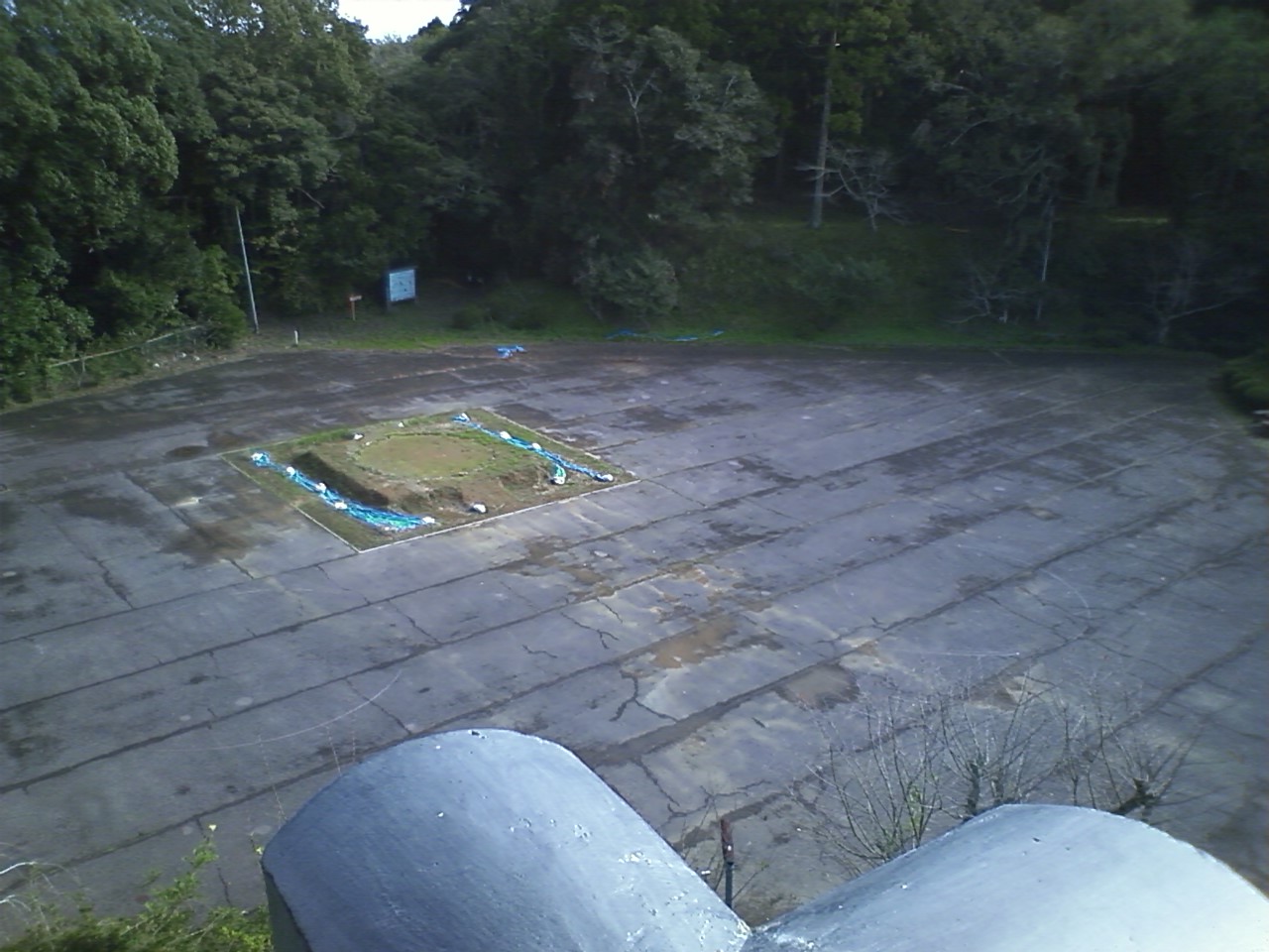 天守閣の展望台から真下を眺めると、相撲の土俵が見える。