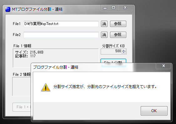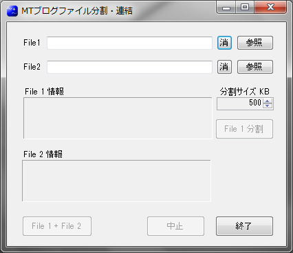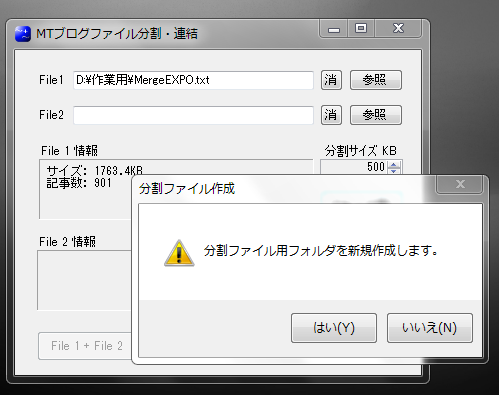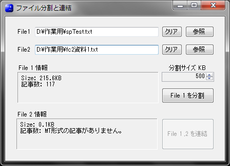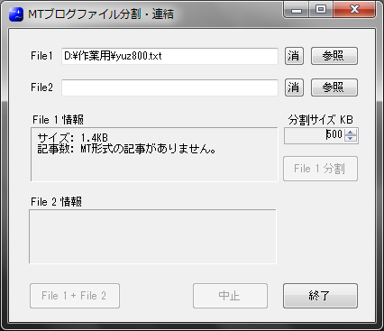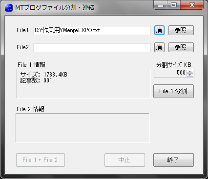 分割したいブログファイルをFile 1 で指定する。