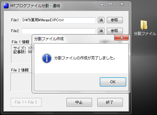 分割ファイル作成の処理が終わった。