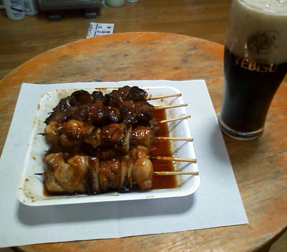 夕方は、買って来た焼き鳥でビールを飲んだ。