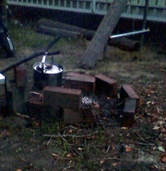 夕方になって、フキを焚き火で煮た。