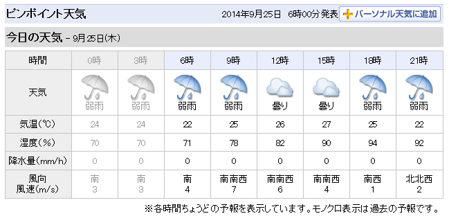 本日の予想 自宅周辺のピンポイント(yahoo天気より)