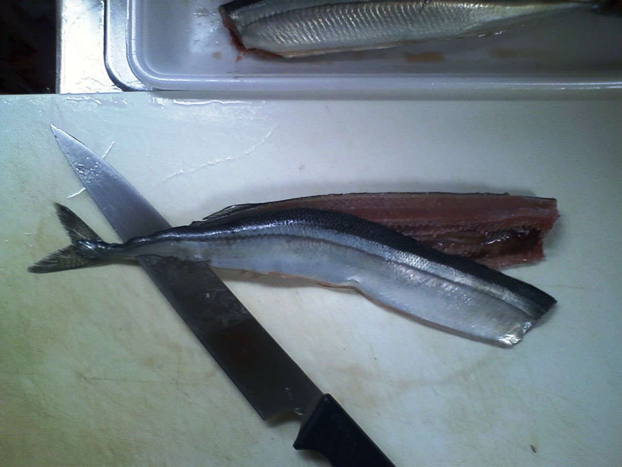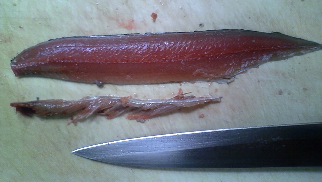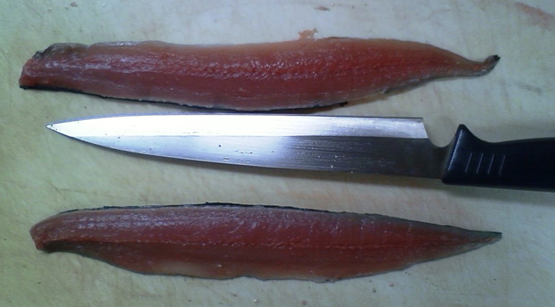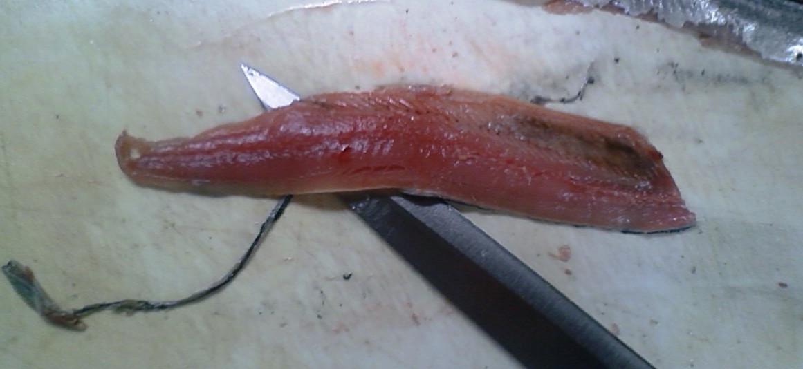 そのような鮮度の落ちた魚は、頭を落として腹を裂いて包丁で内蔵を掻き出す。
