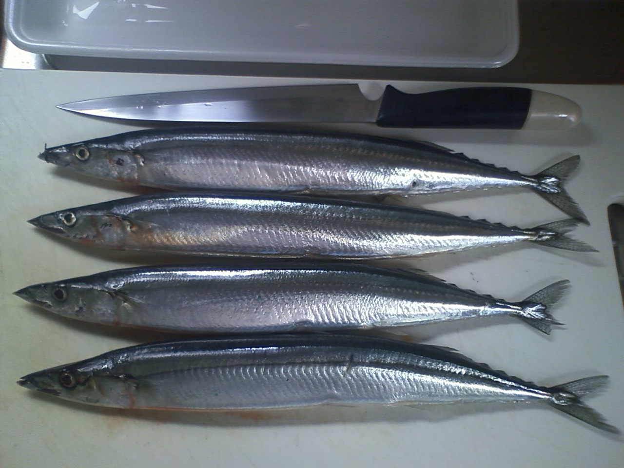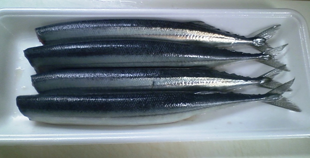 まな板の上の魚は体長35cm弱の小ぶりなサンマ、四尾である。