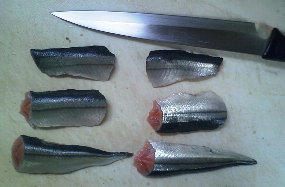刺身にするには皮をむくが、僕はたいがい尾の方から皮を引く。