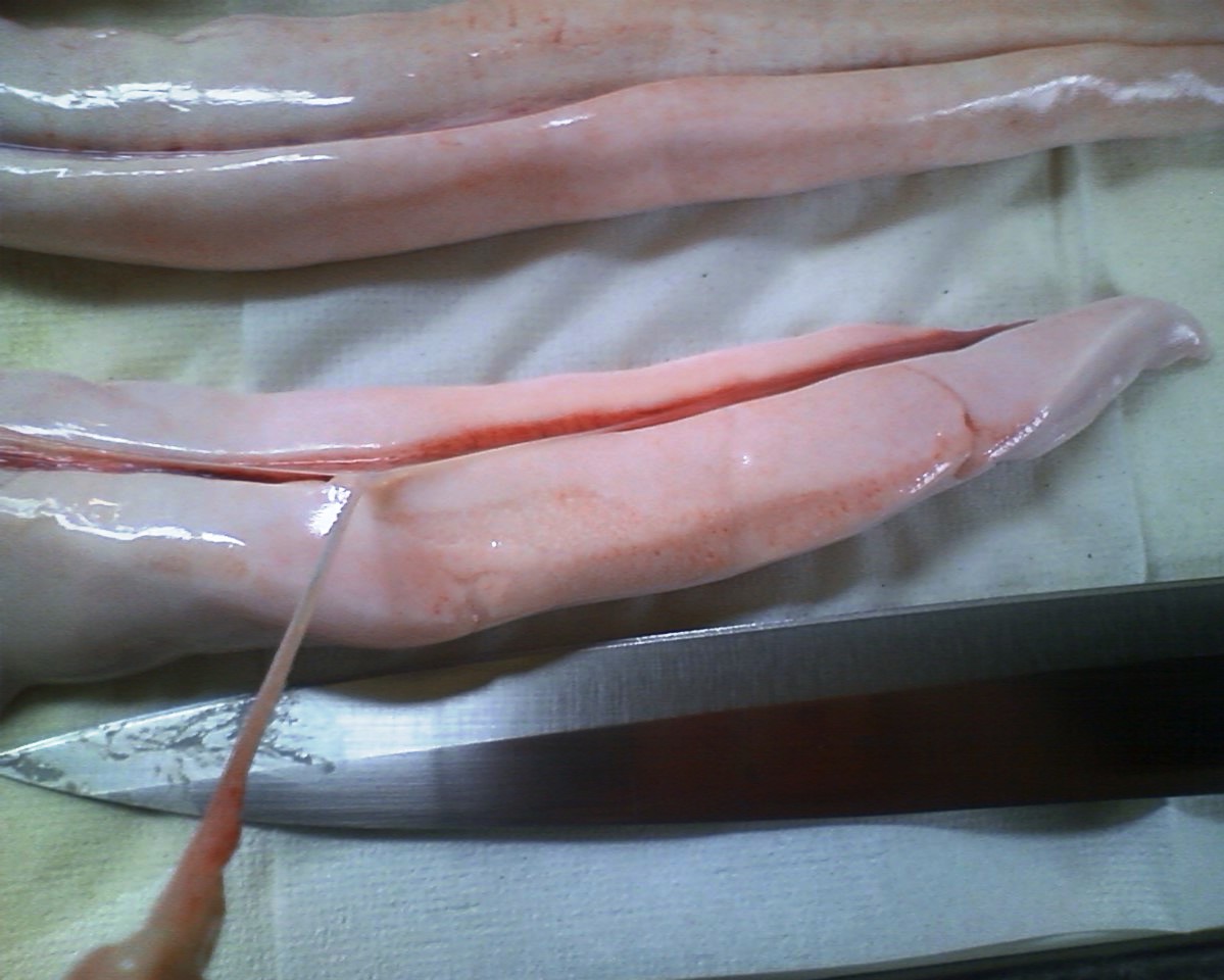 この筋が生臭みの元という話も聞くので、いちおう取り去る。