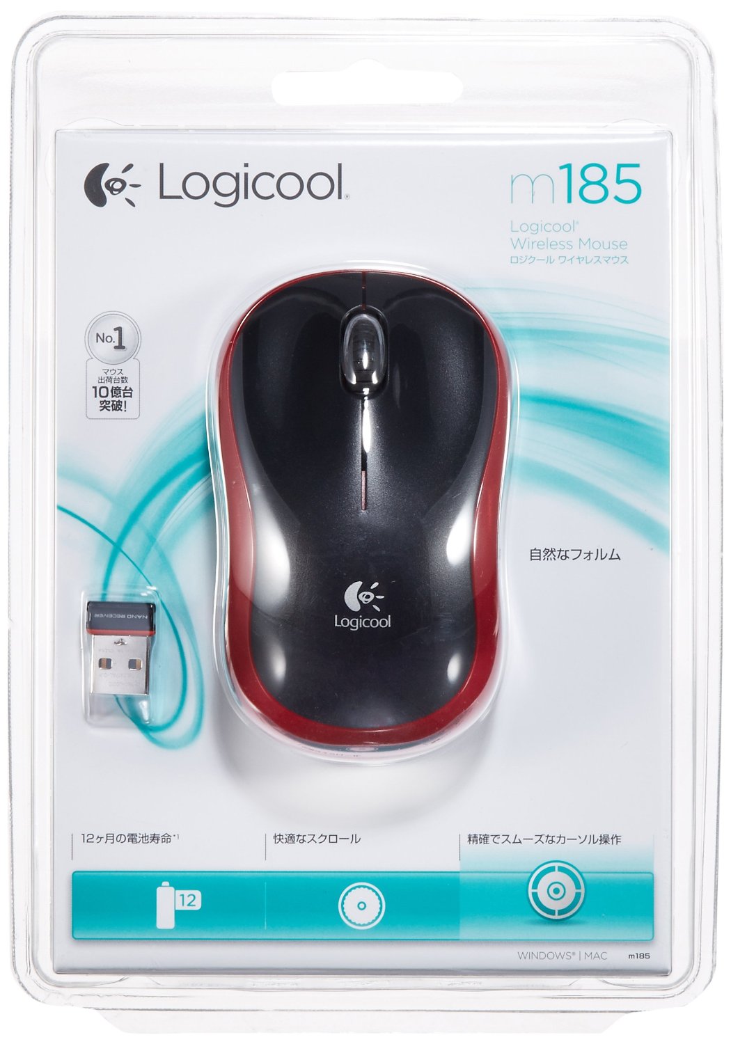 製品名は、LOGICOOL ワイヤレス 光学式 3ボタン レッド M185RD