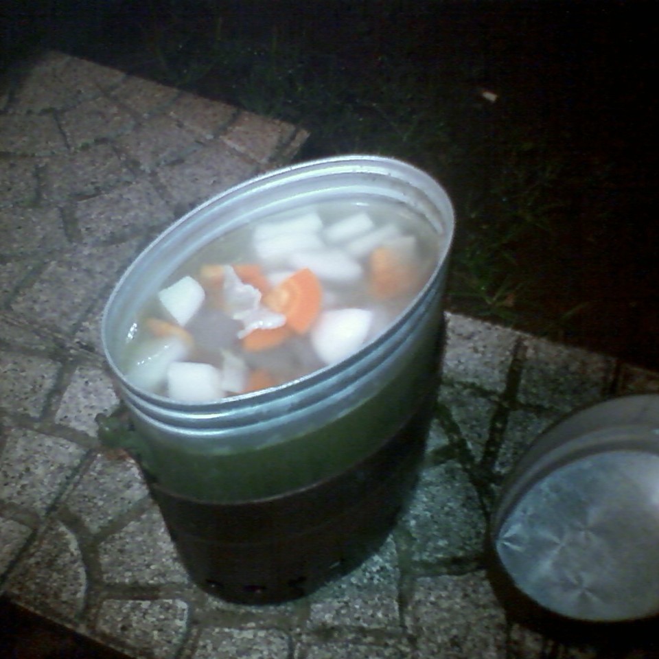 燃料のアルコールがまだ残っていたので、続いて無くなるまで煮ていた。