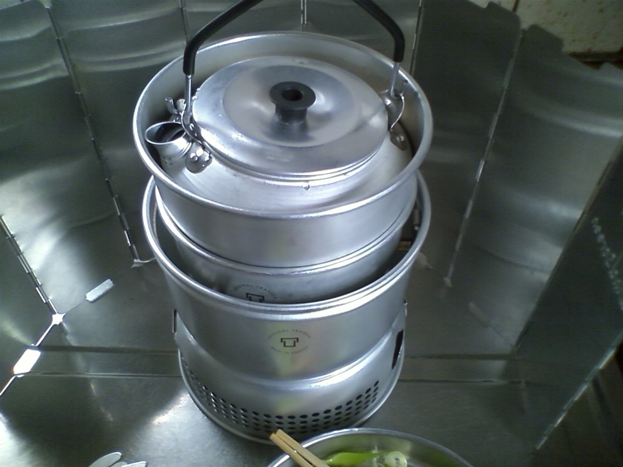そして大きい方の鍋を重ねて、フタ代わりにする。