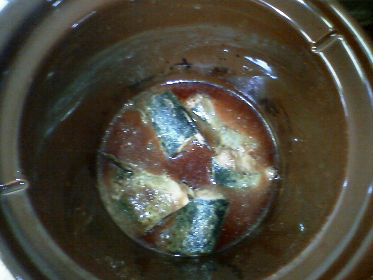 昨夜のうちにスロークッカーで、サバの味噌煮を作っておいたので・・・