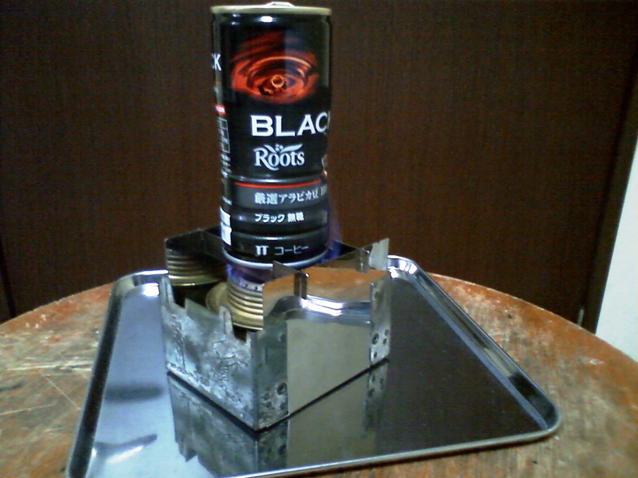細い缶はゴトク上で不安定なので、このような工夫をすると良いと考えたのだ。
