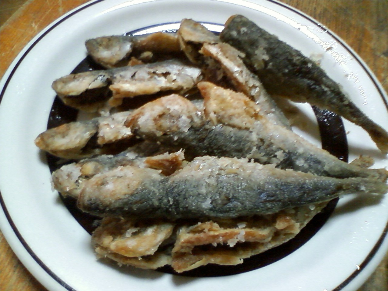 それから暫くしてから、一昨日の晩にハラワタを抜いておいたアジを唐揚げにした。