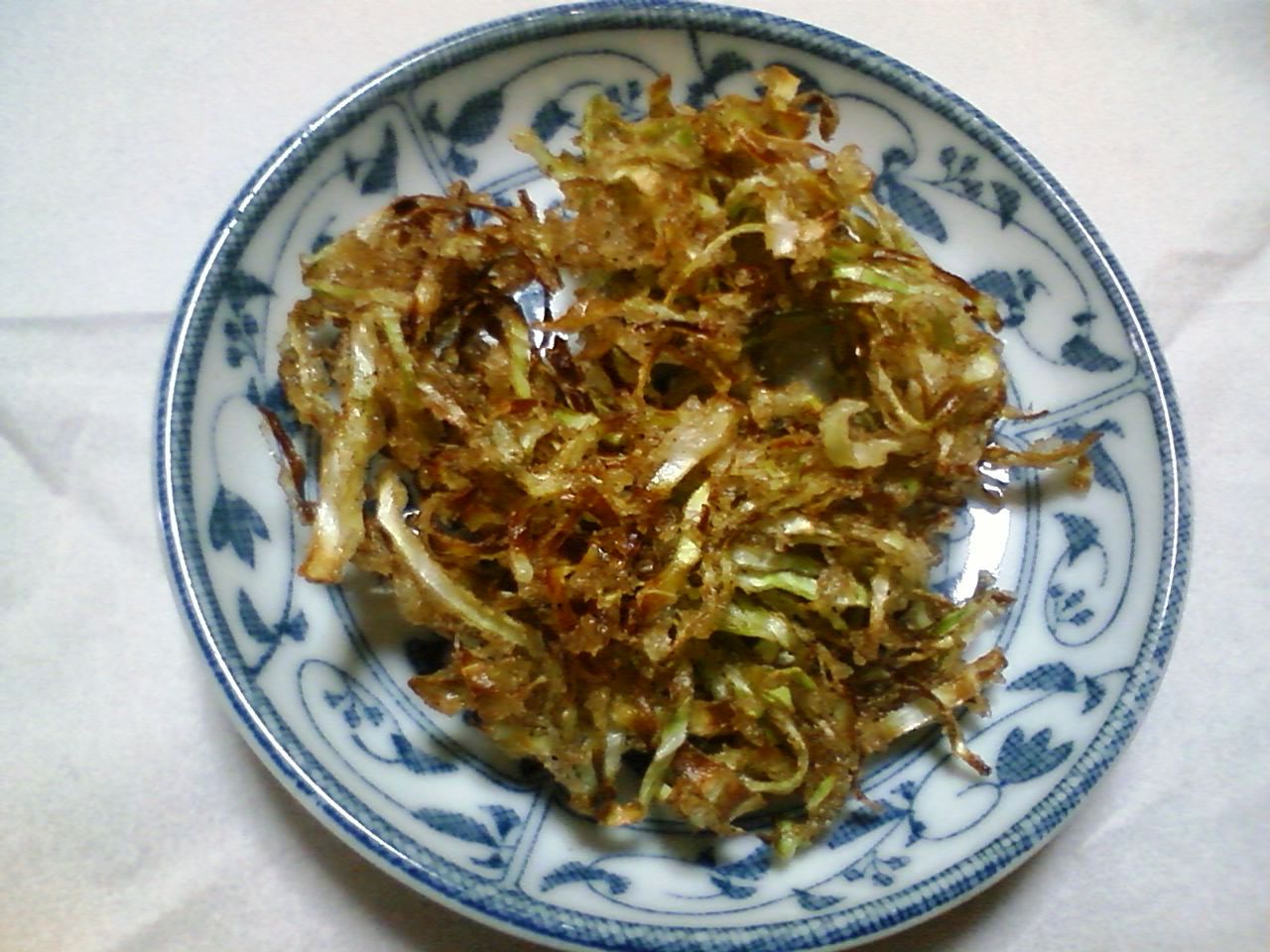 このキャベツの天ぷらは、食べると口の中が痛かった。