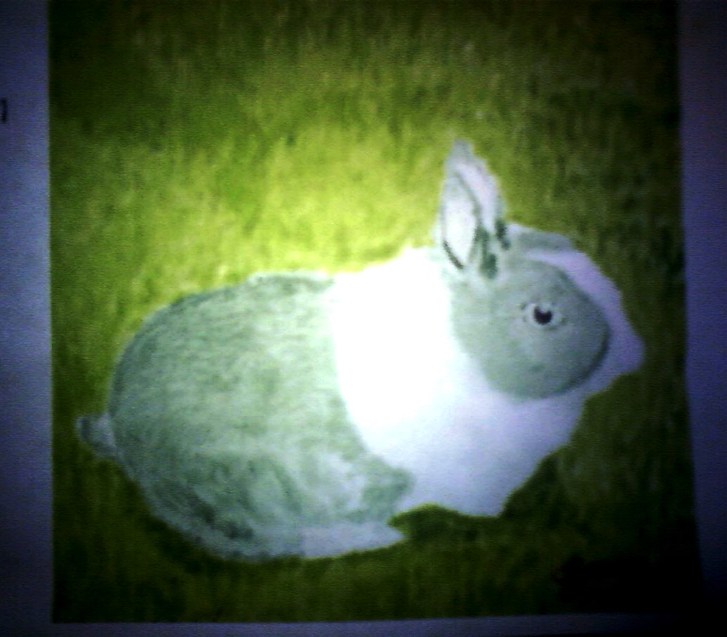 このウサギは、壁に貼って色褪せた絵を写真に撮ったもの。