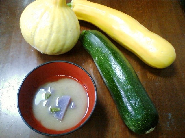 上の写真で右側にある緑色はズッキーニで、緑と黄色の二本を買って来た。