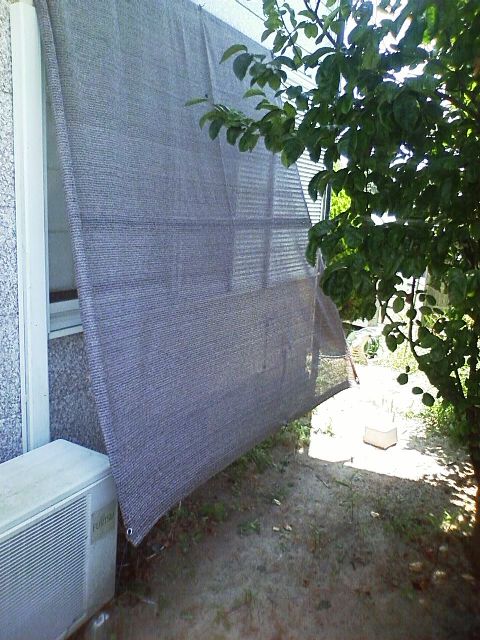去年から日除けをスダレから、サンシェードという名の日除けシートに替えた。