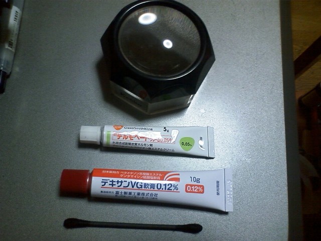 とりあえずデルモベートを使い、翌日はリンデロンVGを使ってみた。