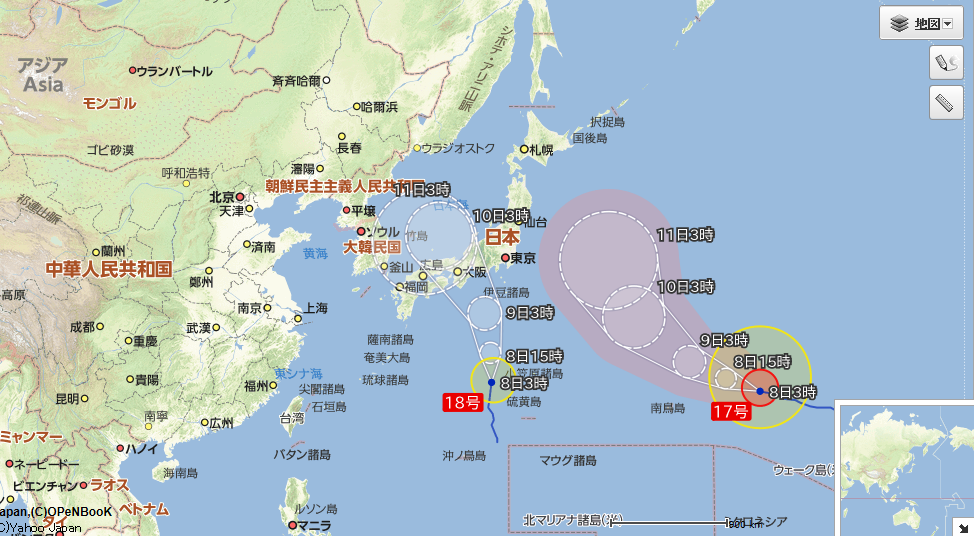 この台風で18号は関東から離れているのに、関東に大雨を降らせて洪水を引き起こした。