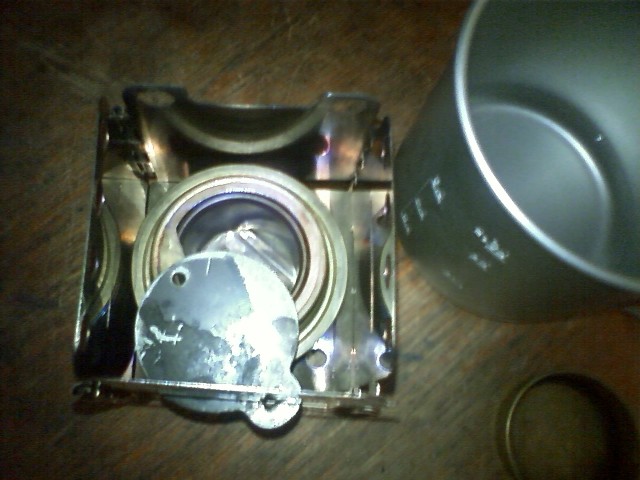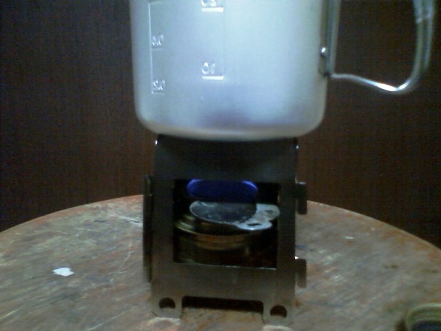 このウッドストーブで、トランギア・アルコールバーナーを使う方法。