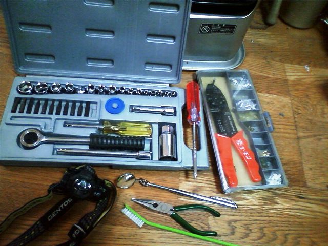 あいにく長いドライバーを持っていないので、レンチセットの柄を繋ぎ合わせて使った。