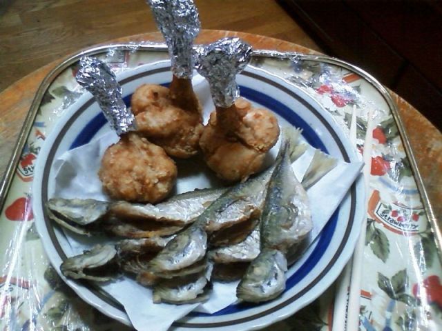 チューリップのから揚げにして、ついでに豆アジも一緒に揚げて食べた。
