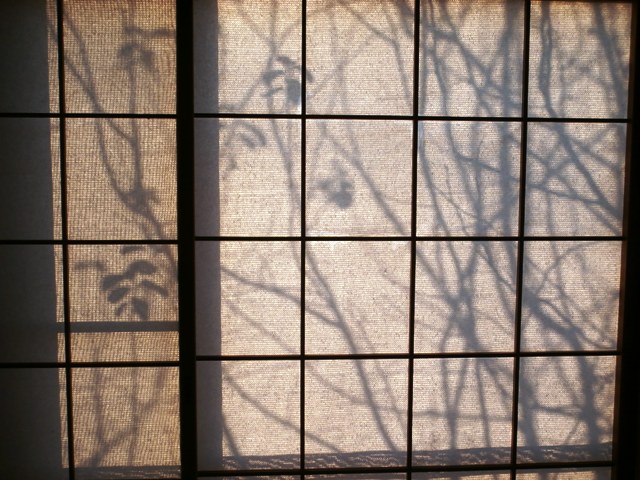 陽が傾いてくると、いつも障子に庭木の影が映る。