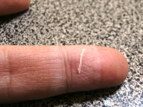 これまで、このような失敗をした事はないが、何が悪かったのか包丁の刃先が指を浅く切った。