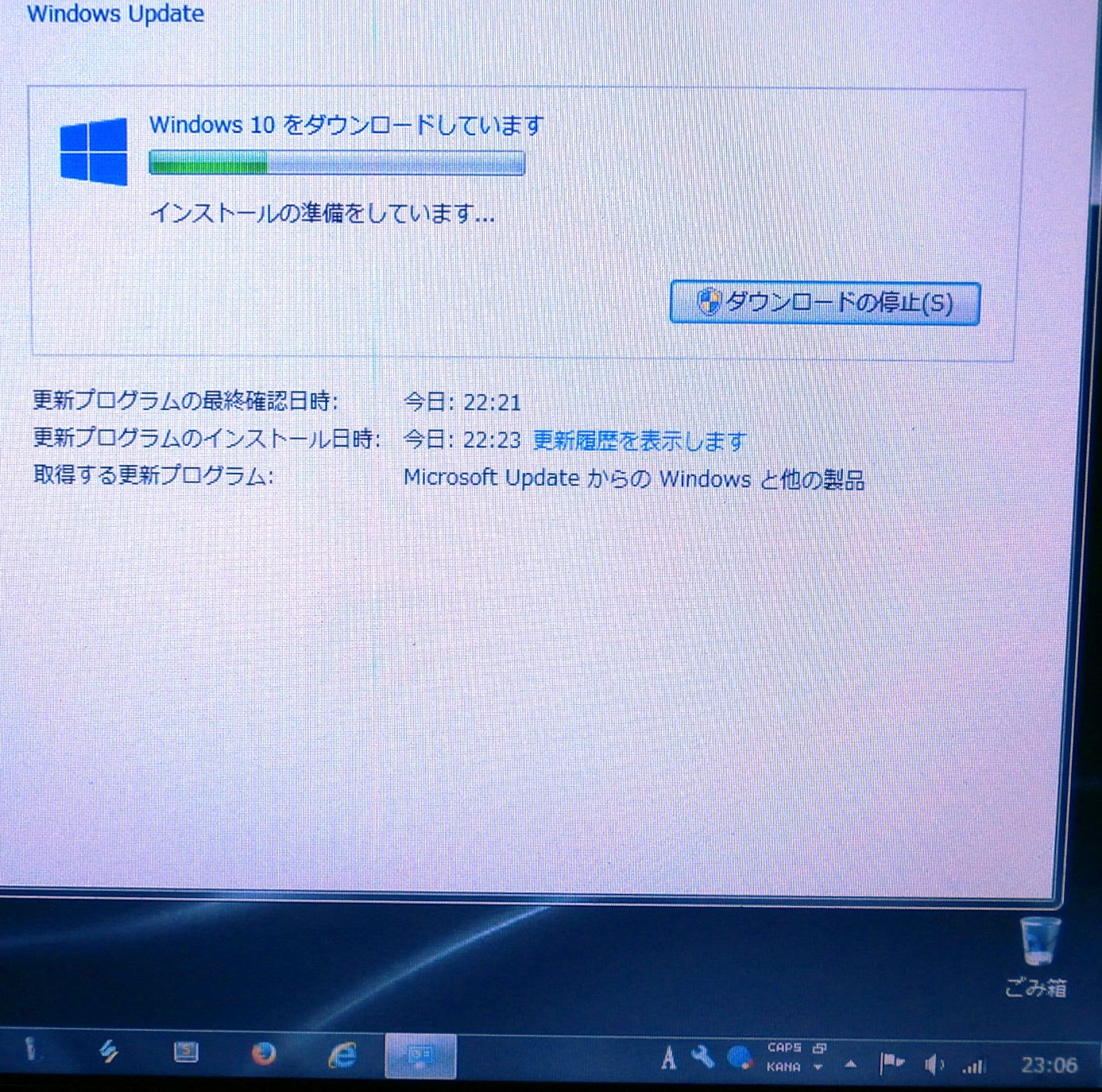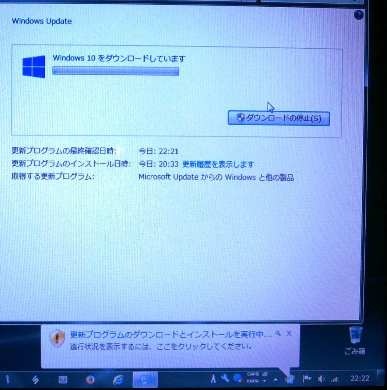 20:33頃から何やらしたのだったかな、すでに2時間近く経過した22:21にダウンロードが始まった。