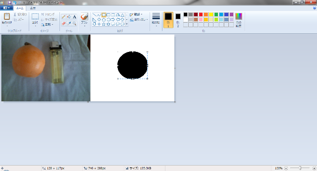 楕円のサイズと位置決めが終われば、適当な場所でカチッと左クリックすると画像が確定する。