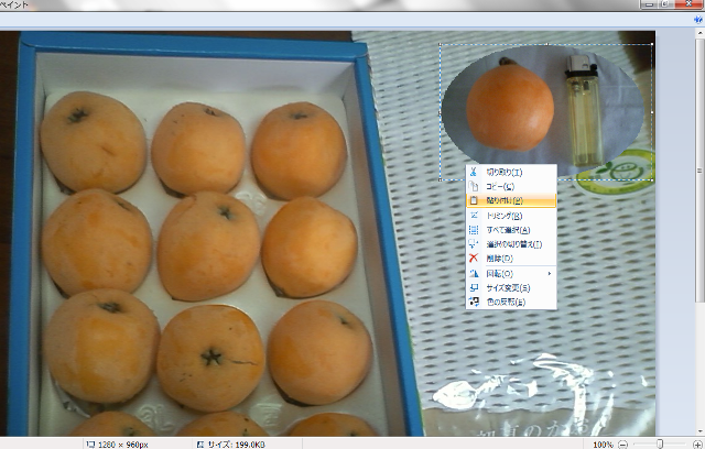 次に、もう一つのペイントにある画像を開いて適当な位置に貼り付ける。