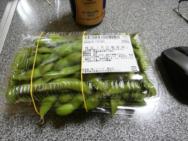 ところで、今日のビールにはスーパーで枝豆を買って来た。