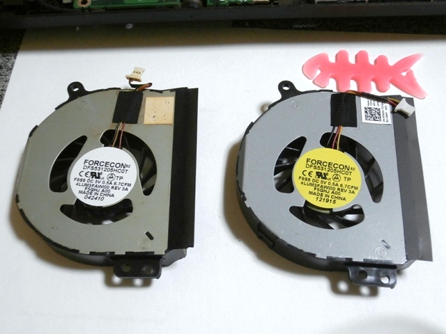 写真の左側が取り外したファンで、右側が新しいファンである。