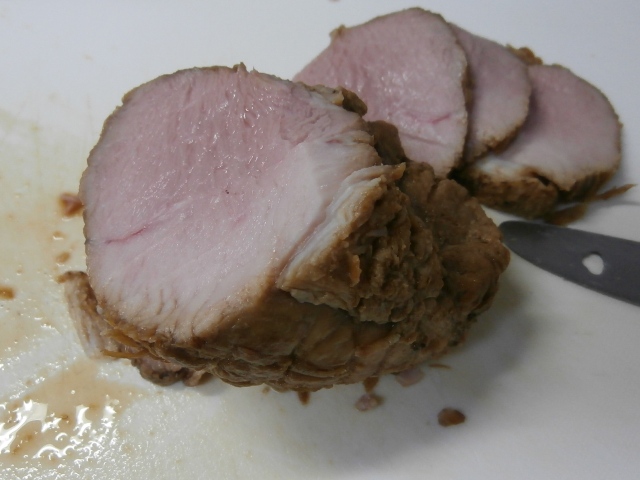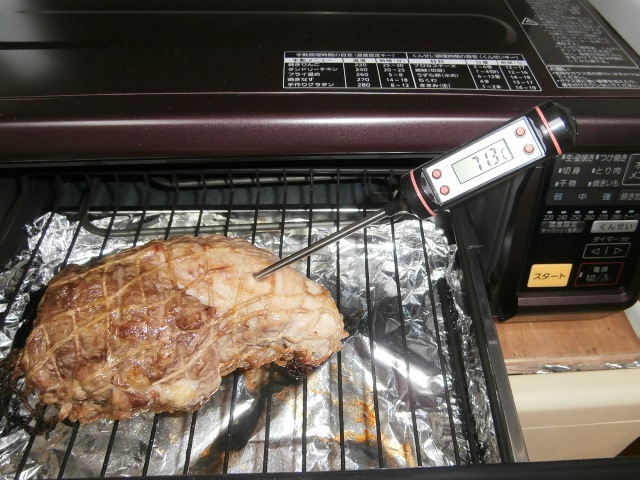 豚肉の焼き加減はいろいろあるだろうが、中心温度が70℃以上あれば良いのかなぁ?