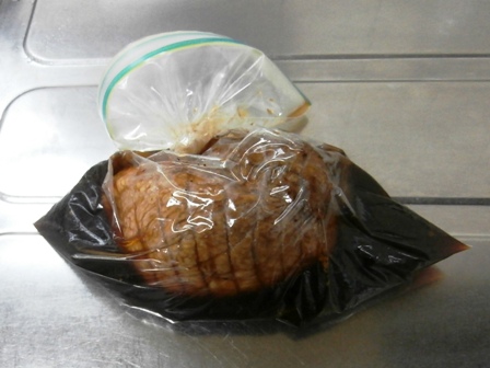 そして肉の下処理は豚肉を縛るかネットで包むだけで、フォークを刺したりしない。