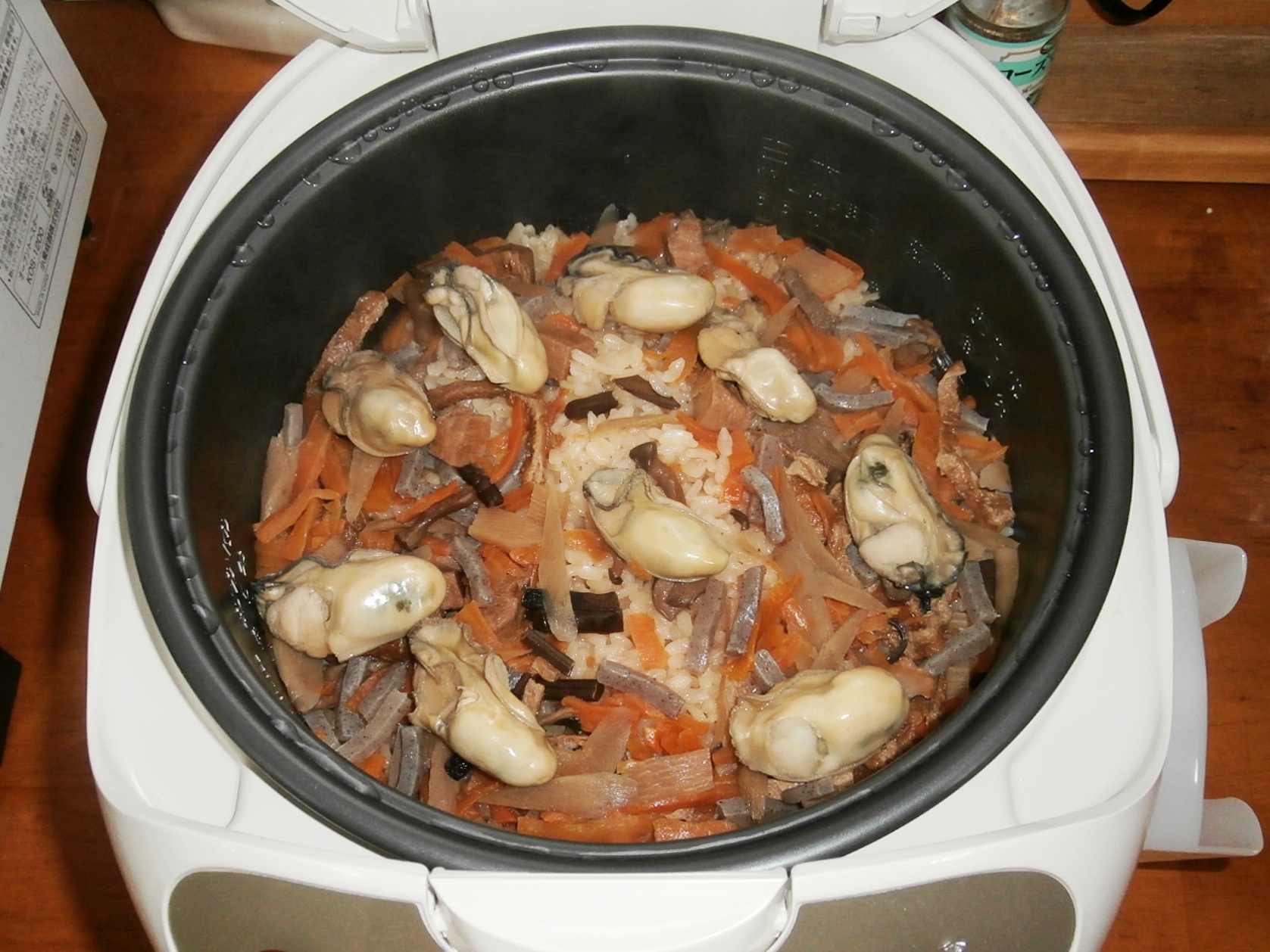 都合よく家に五目の炊き込みご飯の素があったので、それに牡蠣を足して炊いた。