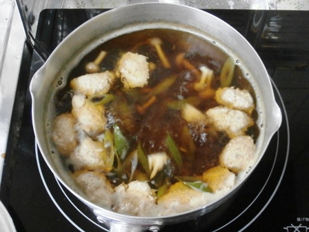 イワシつみれを静かにいれて、しばらく煮る。