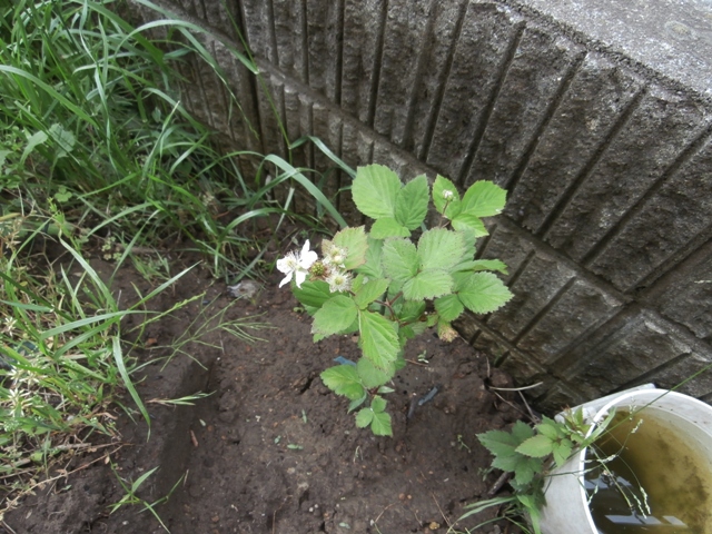 今月の初め頃だったと思うが、ブラックベリーとラズベリーの苗を買って庭の隅に植えた。