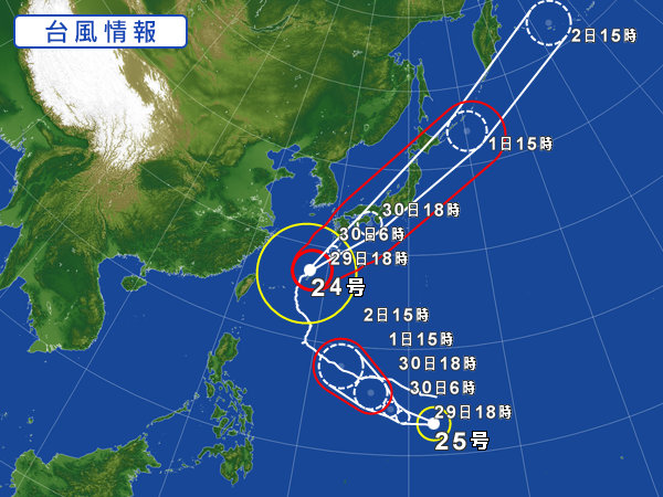 しかも、さっき台風情報を見たら新たな25号が後追いのように・・・