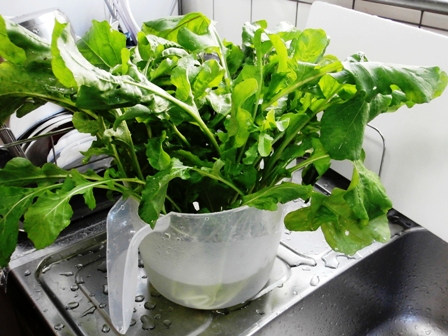 このルッコラは近くで入手したものだが、かなりの量があって食べ切れない。