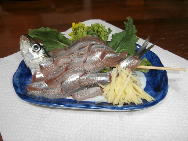 カツオ刺身が歯痛で食べられなかったので、数日後にイワシの刺身を作ってみた。