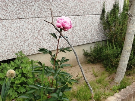 我が家のシャクヤクは二つの蕾をつけたが、一つだけしか花開かなかった。
