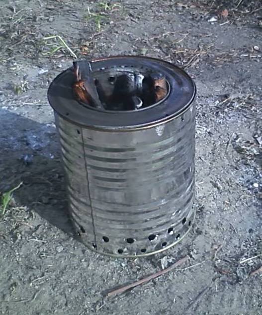 空き缶を使って、小枝などの木材を燃やすストーブを作ってみた。