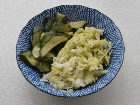 キュウリや菜っ葉などは冬場は一晩と半日は漬けないと物足りず、夏でも一晩は漬ける