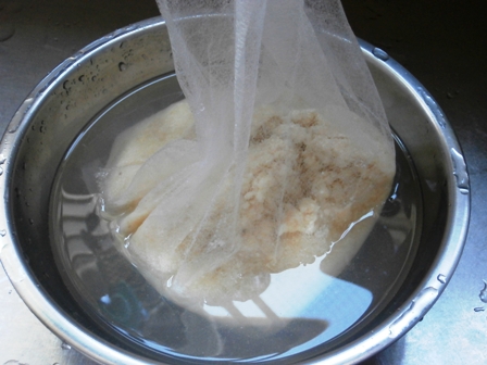 布きん、カーゼ、不織布など水通しのよい袋におからを入れる。