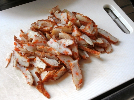 初めは大きなさつま揚げが、炒っているうちに千切れて小さくなる。