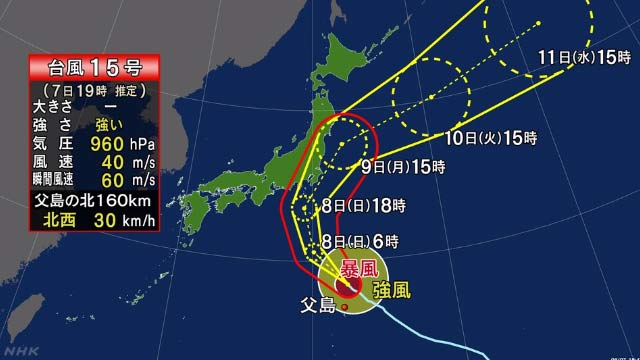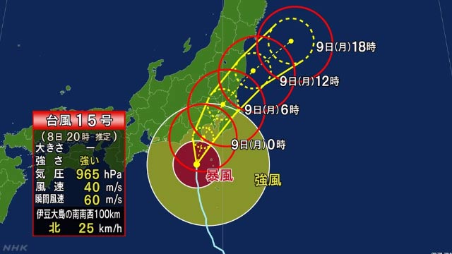 ニュースを見たら台風15号の予想が、我が家の近くを直撃コースに・・・