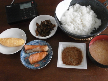 ナスを塩もみして漬物代わり、納豆、味噌汁を作ればいつもの朝と同じ。
