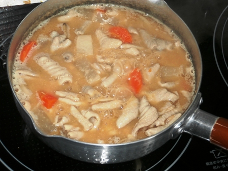 15分間ほど茹でて具材が柔らかくなった事を確かめて、硬ければ更に茹で続ける。