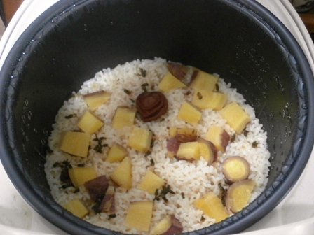 9月半ば過ぎにもサツマイモを買って焼き芋にしたが、今回は炊き込みご飯にしてみる。